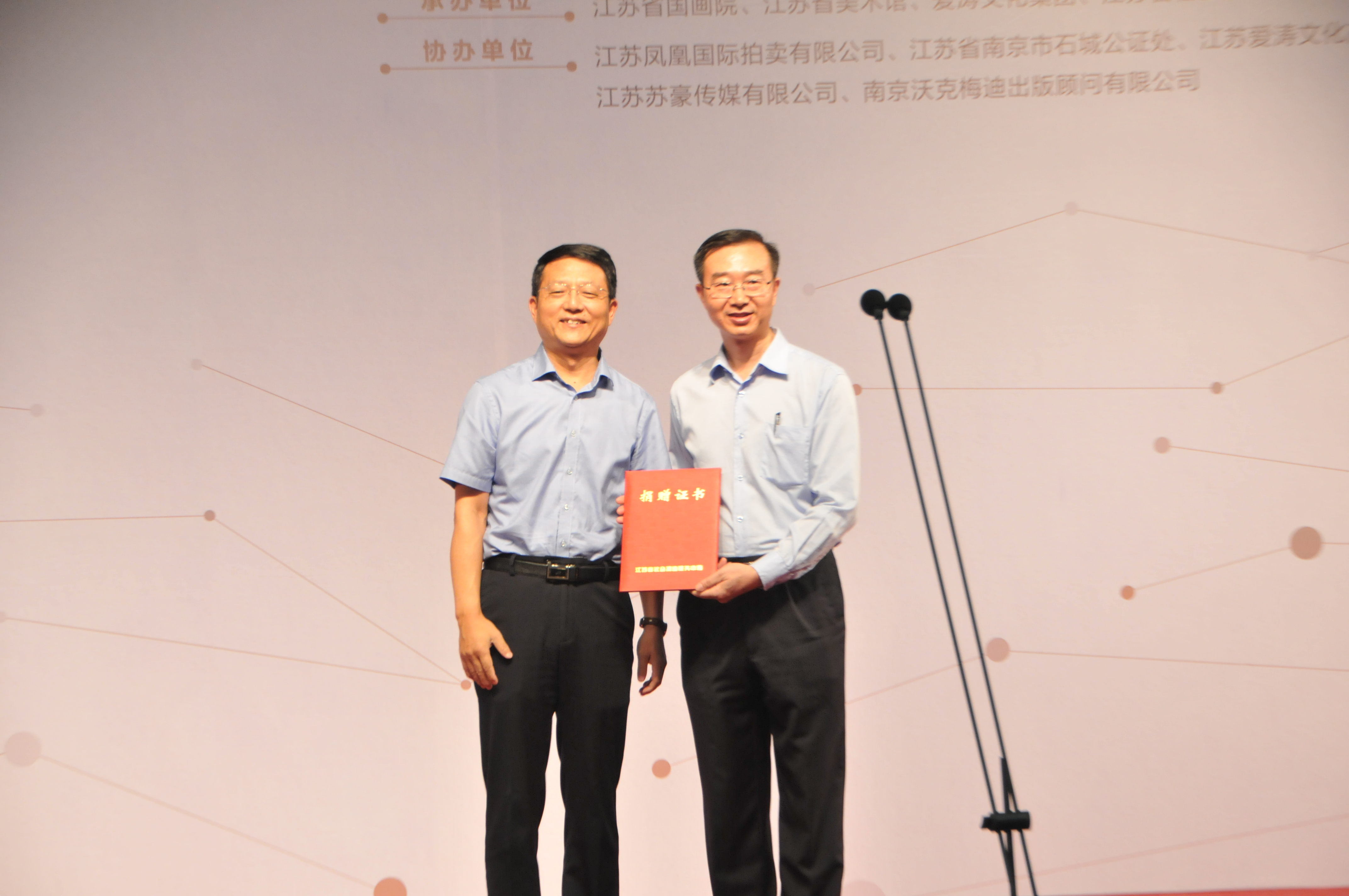 “大爱如涛——江苏省文化系统赈灾义卖书画作品展”今在省美术馆开展 徐耀新、赵顺盘共同为其揭幕 周勇总裁致辞