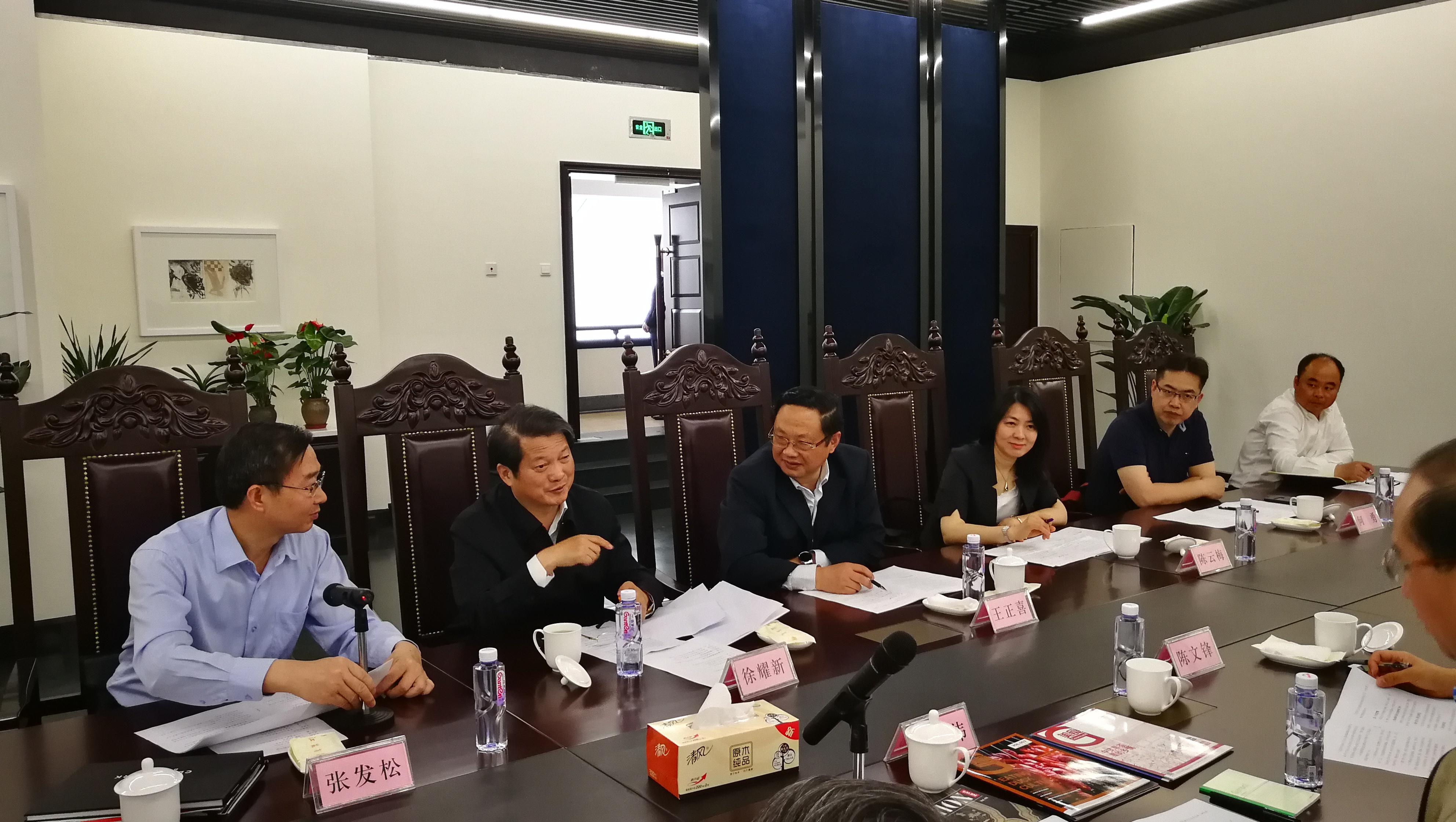 5月18日,文化部丁伟副部长在南京调研苏豪控股爱涛文化集团在海外开展文化交流等工作情况,江苏省文化厅党组书记、厅长徐耀新、苏豪控股集团党委书记、董事长王正喜等陪同调研。省文化厅徐耀新汇报了荷兰海牙中国文化中心的工作情况。爱涛文化集团汇报了在英国设立爱涛文化中心的进展情况。