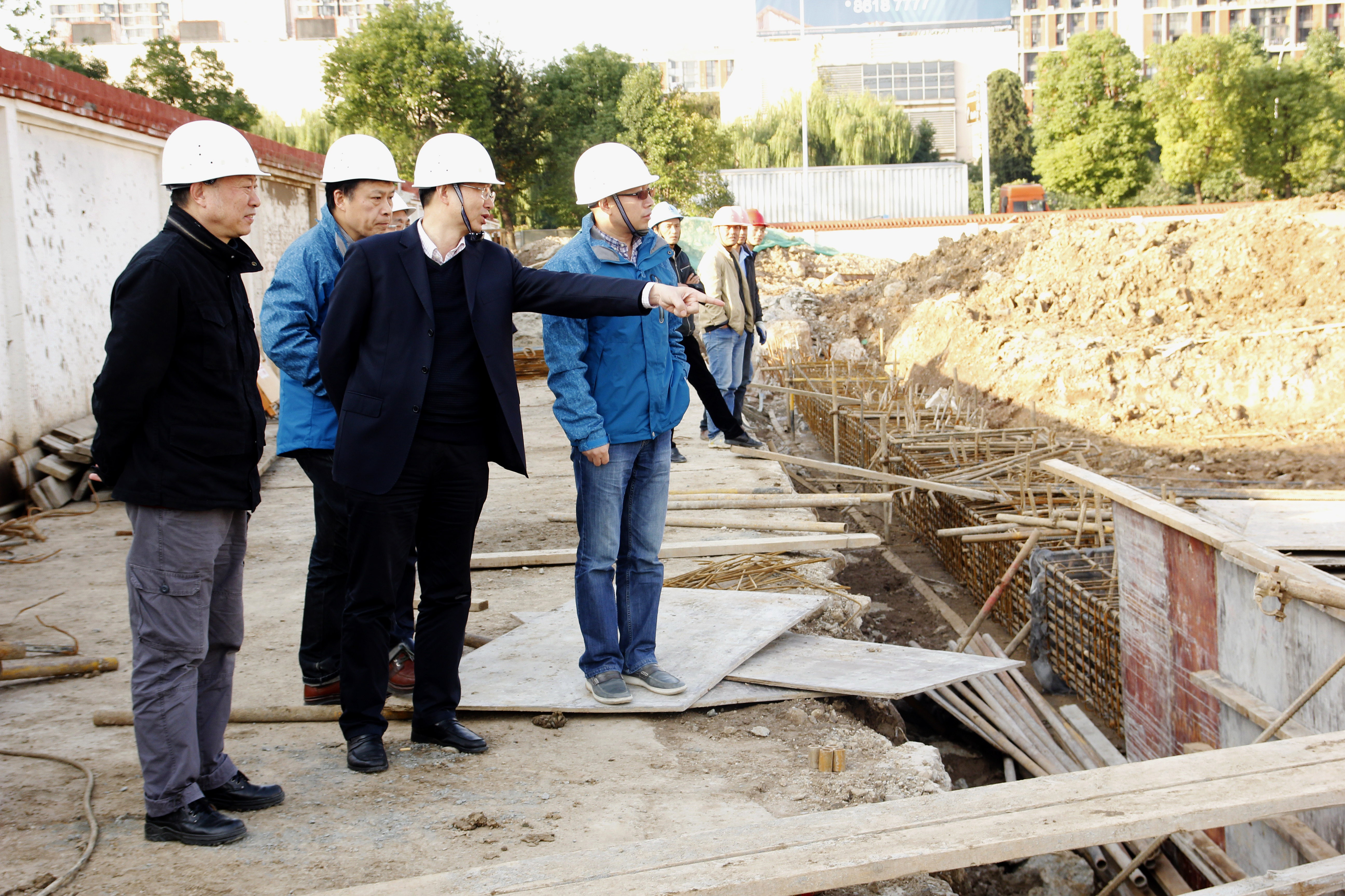 2016年11月1日下午,文化集团党委书记张发松带队来到爱涛文创中心项目部建设现场,检查项目建设情况、督促落实“两个责任”。